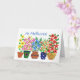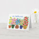 A Get Well Soon card with the greeting in Portuguese and a row of flowerpots of colourful flowers, from a handpainted paper collage by Judy Adamson. The inside is left blank for your own message and please contact me through my store if you'd like a different front cover greeting.