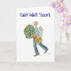 A 'Get Well Soon' card with a young man bringing fruit, flowers and magazines to someone who is sick; from a watercolour painting by Judy Adamson. The inside is left blank for your own message.
