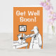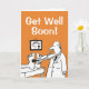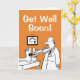 Birthday card for a hospital patient. Get well soon funny cartoon card. Create your own inside message. Orange background.