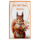 Cute image of a squirrel holding a bouquet of flowers in its paws with the text Get Well Soon - image generated with the help of AI. You can easily personalize this gift bag with your own text and name.