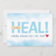 This cute design is a great way to remind your loved one you care when they are under the weather. Featuring watercolor bandage with eyes and smile, the featured message is "HEAL! Sending healing hugs to your heart with HEART illustration)" Background is soft blue watercolor. Inside can be customized with your own message.