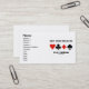 Bridge players and bridge club owners will enjoy introducing themselves with this positive, upbeat business card featuring the four card suits along with the bridge saying "Get Your Mojo On Play Bridge". Sound bridge advice from all avid bridge players!