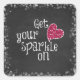 Get your sparkle on Quote Merchandise, Gifts. Black chalkboard background with white text and red faux glitter heart. (some designs have a silver faux glitter heart) Bokeh light edge highlights surround the sparkle quote. Inspirational and motivational message.