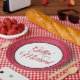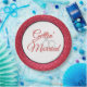 Party paper plate shown in a lovely Red faux glitter print around the rim and White centre. Gettin' Married in a fancy script in centre with two interlinked rings.