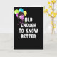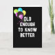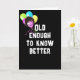 Balloon bouquet with fun face, hair and humourous text on black for getting older birthday.