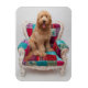 A happy Goldendoodle sitting contently on a colourful, patterned chair. This cute shaggy puppy seems to be larger than the chair but never too big to hold in your arms. With his tongue sticking out, facing the camera in this photo, he would make the perfect companion. Discover lots more cute puppies here on Zazzle with Getty Images.