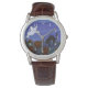 A tiny watercolor of a ghost and a black cat in the pumpkin patch adorns this fun Halloween watch!