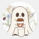 Cute ghost holding a coffee with floral accents
