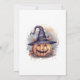 Create a unique Halloween party invitation featuring a watercolor skeleton ghost with jack-o-lanterns and bats on the front and a Halloween pumpkin wearing a hat at the back.