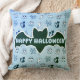 Ghost, Spiderwebs and Black Cats Blue Throw Pillow