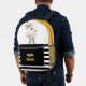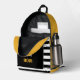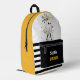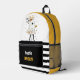 Add a touch of playful charm to your Halloween with this adorable backpack. Featuring a friendly ghost surrounded by vibrant sunflowers and striped pattern in black, white and yellow, this design is perfect for creating a festive and inviting atmosphere. The unique combination of Halloween elements and cheerful patterns will make your gifts extra special. You can easily customize it with name.