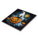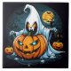 A playful ghost emerges from a pumpkin patch under a full moon, surrounded by grinning jack-o'-lanterns, capturing the essence of Halloween's eerie charm.