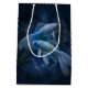 Beautiful haunting image of ghostly goldfish in blue tones swimming in a seemingly smoky sea.