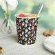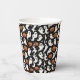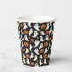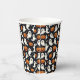 Cute ghosts float among grinning jack o'lanterns on a black background on this fun Halloween paper cup.
