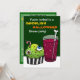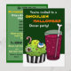A Halloween Dinner Party Invitation featuring a gross looking green Cupcake with eyeballs an worm poking out the top next to a unusually coloured fizzy drink with a bone stirrer. Invite your friends round for a disgusting feast and see who has the strongest stomach! Customise all the text to suit your needs! Illustrations by Jojo Kneebone - Aka MuffinPuffART!