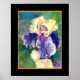 Watercolor of a lovely big soft bearded iris in all its glory. The blues, purples and yellows of the large summer bloom against a soft green background makes a dramatic statement. Used throughout history as a symbol of power by monarchs and royal families, the iris is also known as the Goddess of the Rainbow in Greek mythology. From the floral collection of the watercolor artist Katherine Foltuz.