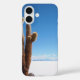 Mobile phone case with a giant cactus on the white salt flats of the Salar de Uyuni in Bolivia.