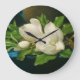 Giant Magnolias on a Blue Velvet Cloth Large Clock