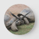 This is a photo of Galapagos tortoises. These adorable, huge reptiles are hanging out, relaxing, and eating grass in a zoo.