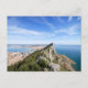 Gibraltar Rock view from above, on the left Gibraltar city and bay, La Linea town in Spain at the far end, Mediterranean Sea on the right.