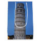 This captivating photograph showcases the iconic Leaning Tower of Pisa standing elegantly against a deep blue twilight sky in Pisa. The historic marble tower, famous for its unmistakable tilt, is beautifully illuminated, highlighting its intricate Romanesque arches and layered columns.