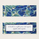 An abstract batik design in aqua and lapis on one side, and repeated on the reverse with a window and the words, "A book is a gift you can open again and again." The text is a changeable template so you can fill in your own words if you'd like! When resizing to regular business card, remember to centre the text! This design is also available in a business card size template.