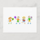 Simple illustration of a group of stick boys and girls each holding a present. Maybe it is a birthday gift or a Christmas parcel. Image available on various gifts and products.