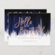 A modern, stylish gift certificate hello beautiful business card with modern hand lettering style brush typography in faux rose gold foil on a trendy and elegant white and blue paint brushstrokes background. If you need any customization, don't hesitate in contacting me
