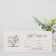 Create a stylish and professional Gift Certificate for your business. This editable template features modern script typography and can be personalized with your company logo and a photo to showcase your products or services. Customize the text with your business name, contact information, any service or product restrictions, and certificate terms and conditions. Space is provided for handwritten details such as recipient's name, gift giver, value, issue date, expiry date, and a unique voucher code. Make your gift card stand out with a creative tagline that reflects your services. This elegant design is ideal for various businesses, including makeup artists, hair and beauty salons, massage therapists, stylists, boutiques, small businesses and many others. Printed colors: pale beige, off-white, black and white, or customize the color to align with your brand.