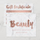 Gift certificate rose gold beauty script marble