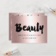 A modern, stylish gift certificate beauty artist business card with modern hand lettering style brush typography in faux rose gold foil on a trendy and elegant rose gold foil metallic background.
