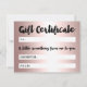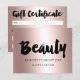Gift certificate rose gold beauty script metallic