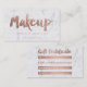 A modern, stylish gift certificate makeup artist business card with modern hand lettering style brush typography in faux rose gold foil on a trendy and elegant white marble background.