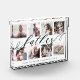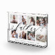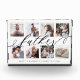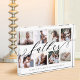 Send a beautiful personalized gift to your father that he'll cherish forever. Special personalized father's day family photo collage photo block to display your own special family photos and memories. Our design features a simple 8 photo collage design with "father" designed in a beautiful handwritten black script style. Each photo is framed with a simple offset gold coloured border. Customize with family member's names.