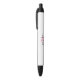 The pen features a white body with a small artistic design in pink and black on the middle section, giving it a charming and playful look.