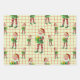This little elf has a gift for you! Red "shaky grid" on a cream background with adorable elves in front.