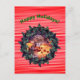 Gift Gold Bow Wreath Christmas Holiday Postcard