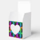 heart gift box has cool different colours designs on it.