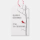 Simple red cardinal sitting on a white winter birch tree in the quiet solitude of winter. this design features Christmas holiday simple red cardinal, minimalist traditional birch tree, classic winter nature botanical woodland, tree branch twig bird animal, classy country farmhouse, with season's greetings modern typography, classic family name simple Xmas, Christmas holiday party gift favour, Christmas holiday gift wrapping supplies, an elegant winter birch red cardinal