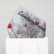 Gift tissue paper with image of a red cardinal bird in a snowy tree with red balls and a quote about Cardinals visiting you when angels are near.