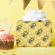 Bees on honey comb cells, is replicated on an angle across paper. Background is pale yellow.