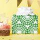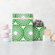 Circles of green beads threaded on a thin line. Larger circle is replicated 4 more times in increasingly smaller circles going to the centre to creates an optical illusion of a tunnel effect. Pattern is tiled.