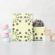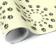 Pawprints in a circle are replicated into three concentric circles of gradually smaller prints. The Three circle pattern is replicated to resemble snowflakes - black prints on pale yellow background.
