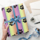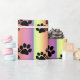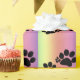 Graphic image of polydactyl (seven toes) paw prints on a rainbow coloured background.