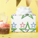 Coloured Stars are tiled over paper. Personalize with Black initial in centre of large green star. Smaller stars in red, blue, yellow and purple, float around the large star. All stars are created with a 3-d looking wire outline.