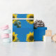Photograph of a bright yellow sunflower against a deep blue sky is replicated across paper.
