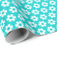 Graphic image of white floret is multiplied many times on a teal background (background colour may be customized).