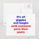 It's all giggles and laughs until someone pees their pants. Humourous design for almost any occasion, birthdays,parties,dances,football games or anyone, teens, adults, children, babies, and much more! If you want to make them laugh this design is for you.