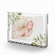 Personalized photo block keepsake with your newborn baby photo, name and birth stats or other custom text. Elegant feminine design has a painted watercolor floral border with white flowers and green and gold foliage. Use the design tools to edit the text fonts and colours or add more photos to create a one of a kind keepsake or gift.