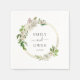 Affordable custom printed wedding cocktail or dinner napkins with an elegant painted floral wreath with ivory roses, greenery and faux gold foil accents. Personalize the design with your wedding monogram and date. Use the design tools to customize the text, choose any background colour and edit the fonts and colours to create your own unique paper napkin design. This beautiful neutral floral design is perfect for any season.